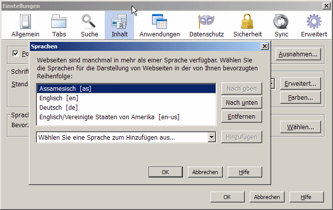 • So stellen Sie in Firefox   die bevorzugte Sprache ein.Öffnen Sie in den Firefox-Einstellungen den Reiter Inhalt.